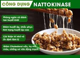 Trong quá trình lên men Natto hình thành enzyme Nattokinase – hoạt chất có khả năng: – Hỗ trợ phân hủy mạng fibrin – thành phần chính hình thành cục máu đông – Giảm các yếu tố thúc đẩy quá trình đông máu – Hỗ trợ duy trì dòng máu lưu thông ổn định